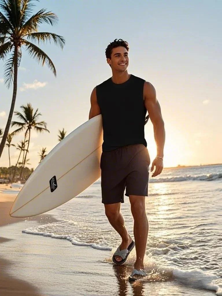 Mens Tank Tops Workout Sleeveless Shirts Summer Solid color Polyester Quick drying Tanks for Men summer Beach Sports T-Shirts